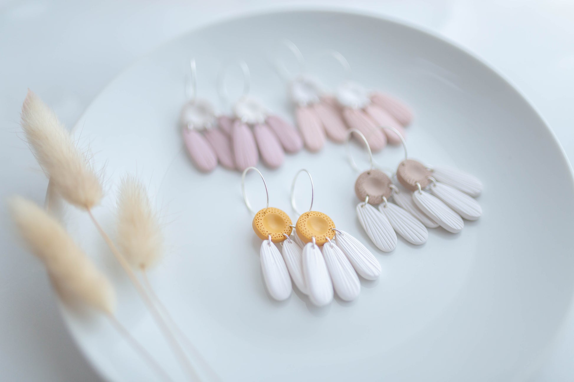 These earrings are extremely lightweight and perfect for any occasion. The metal posts, hooks and hoops are made with hypoallergenic stainless steel and are nickel free, making it perfect for sensitive ears. CUSTOM ORDERS ARE AVAILABLE ** Please note these are handmade clay earrings, slight imperfections and color variation may occur.**