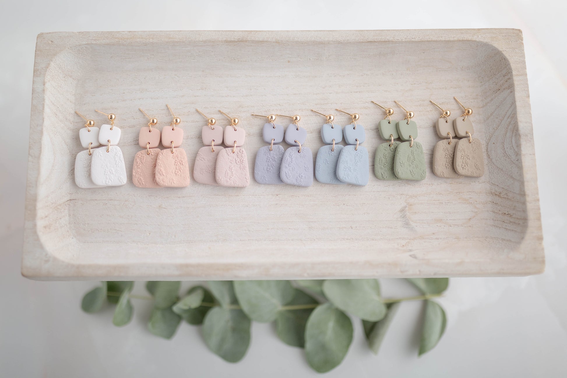 These earrings are extremely lightweight and perfect for any occasion. The metal posts, hooks and hoops are made with hypoallergenic stainless steel and are nickel free, making it perfect for sensitive ears. CUSTOM ORDERS ARE AVAILABLE ** Please note these are handmade clay earrings, slight imperfections and color variation may occur.**