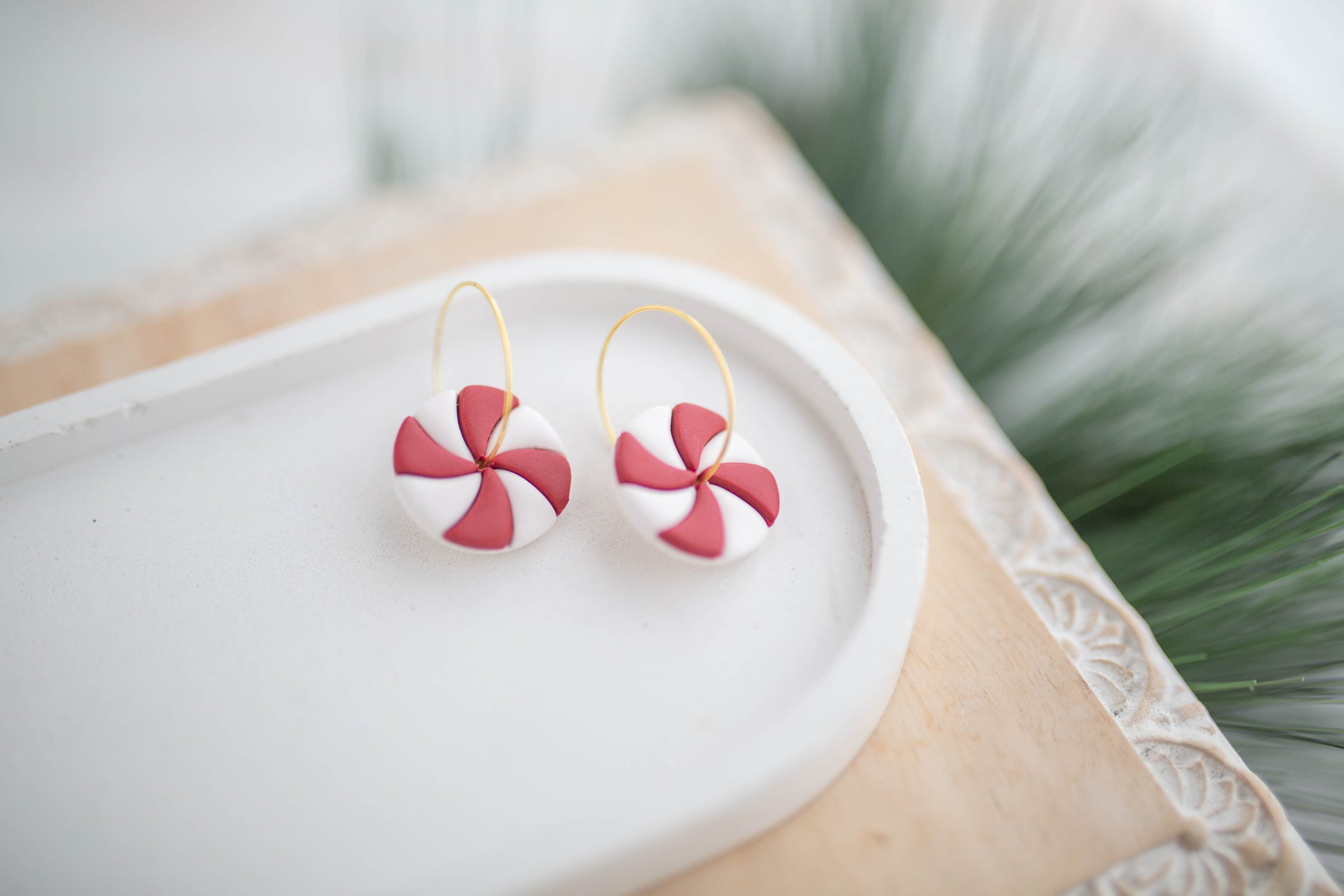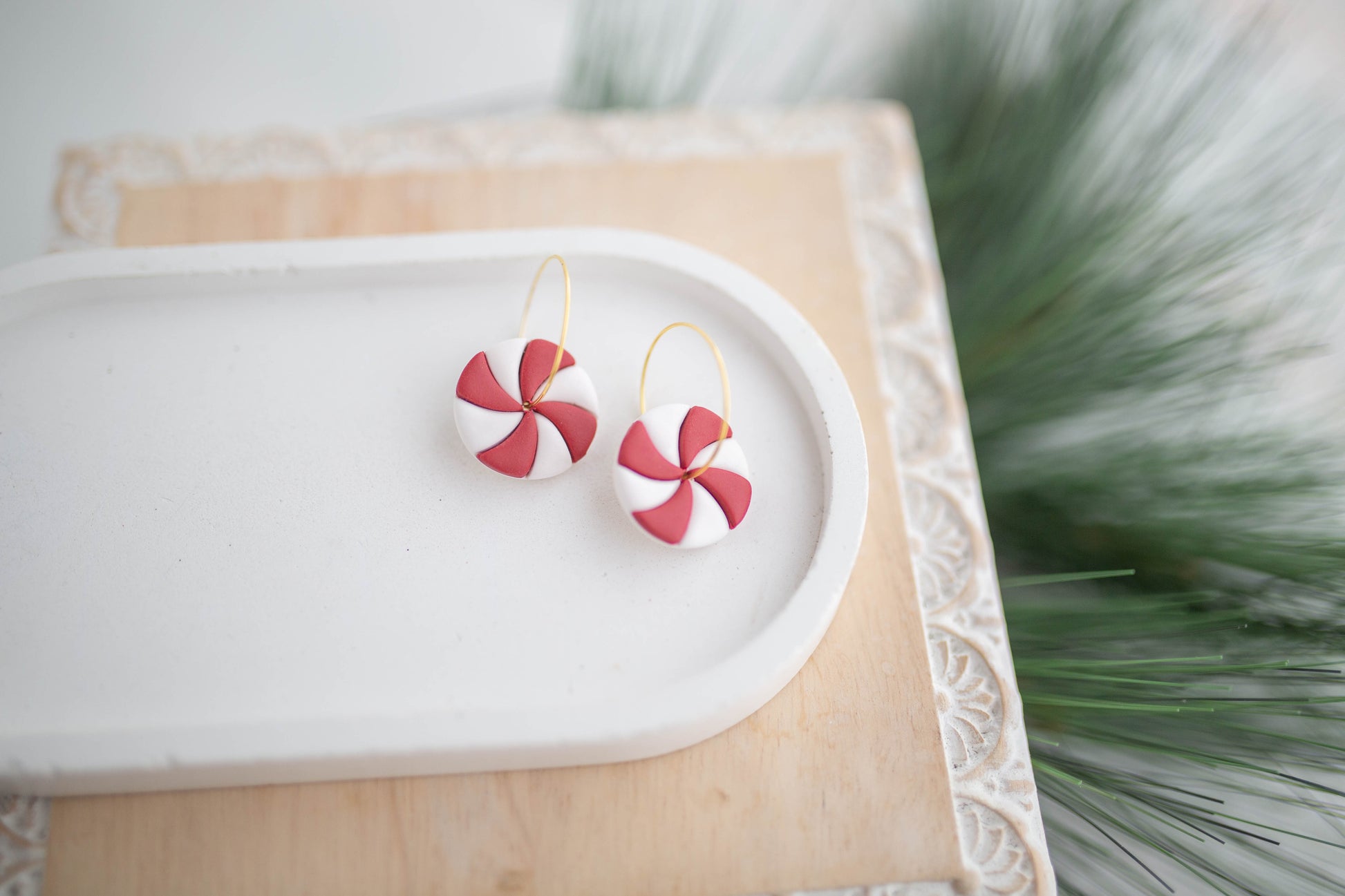 Clay Earrings | Peppermint Hoops | Jingle+Joy Collection