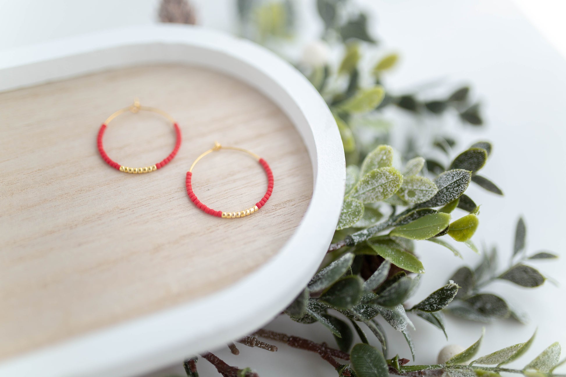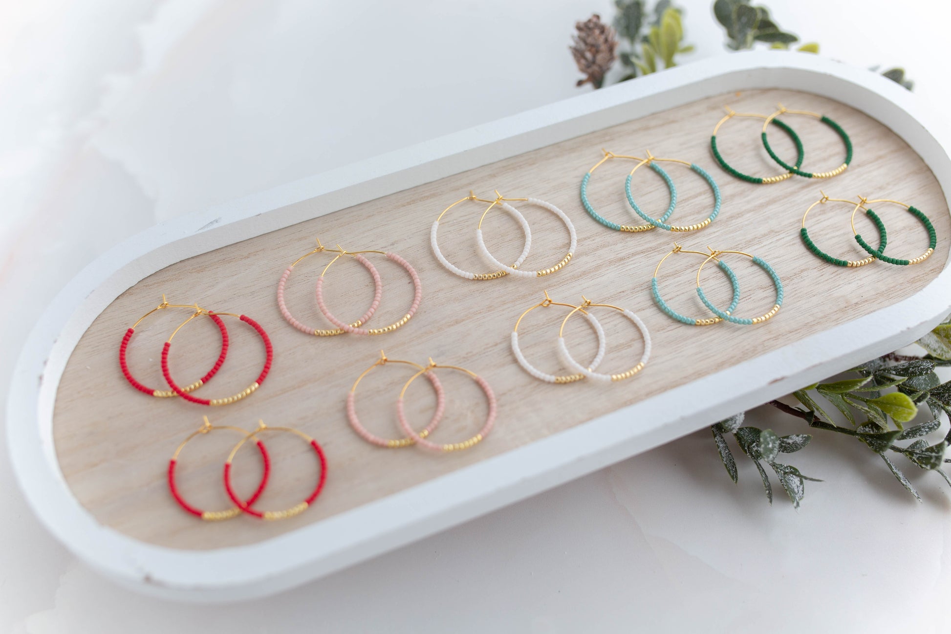 These earrings are extremely lightweight and perfect for any occasion. The metal posts, hooks and hoops are made with hypoallergenic stainless steel and are nickel free, making it perfect for sensitive ears. These hoops are 35mm in size.