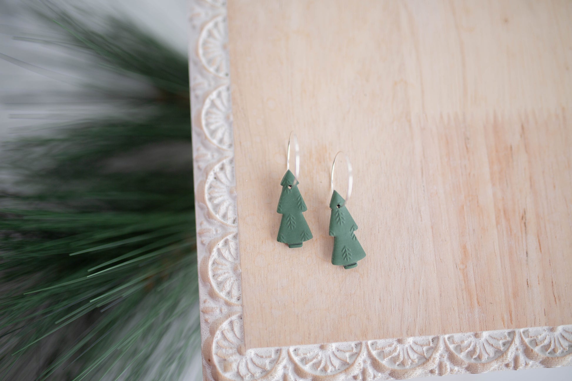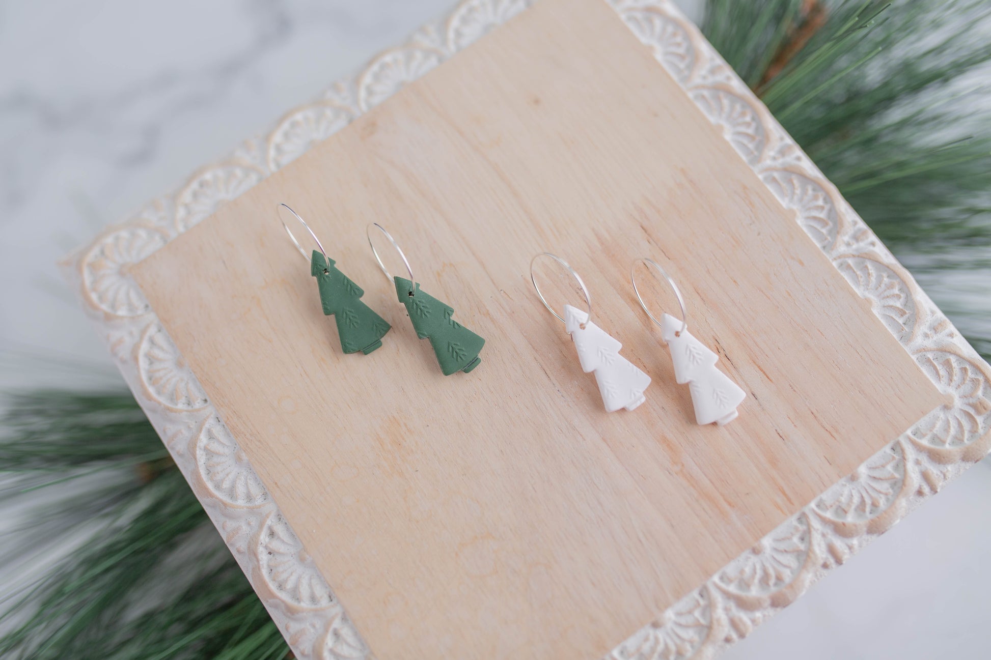 Clay Earring | Mini Tree Hoops | Christmas Collection