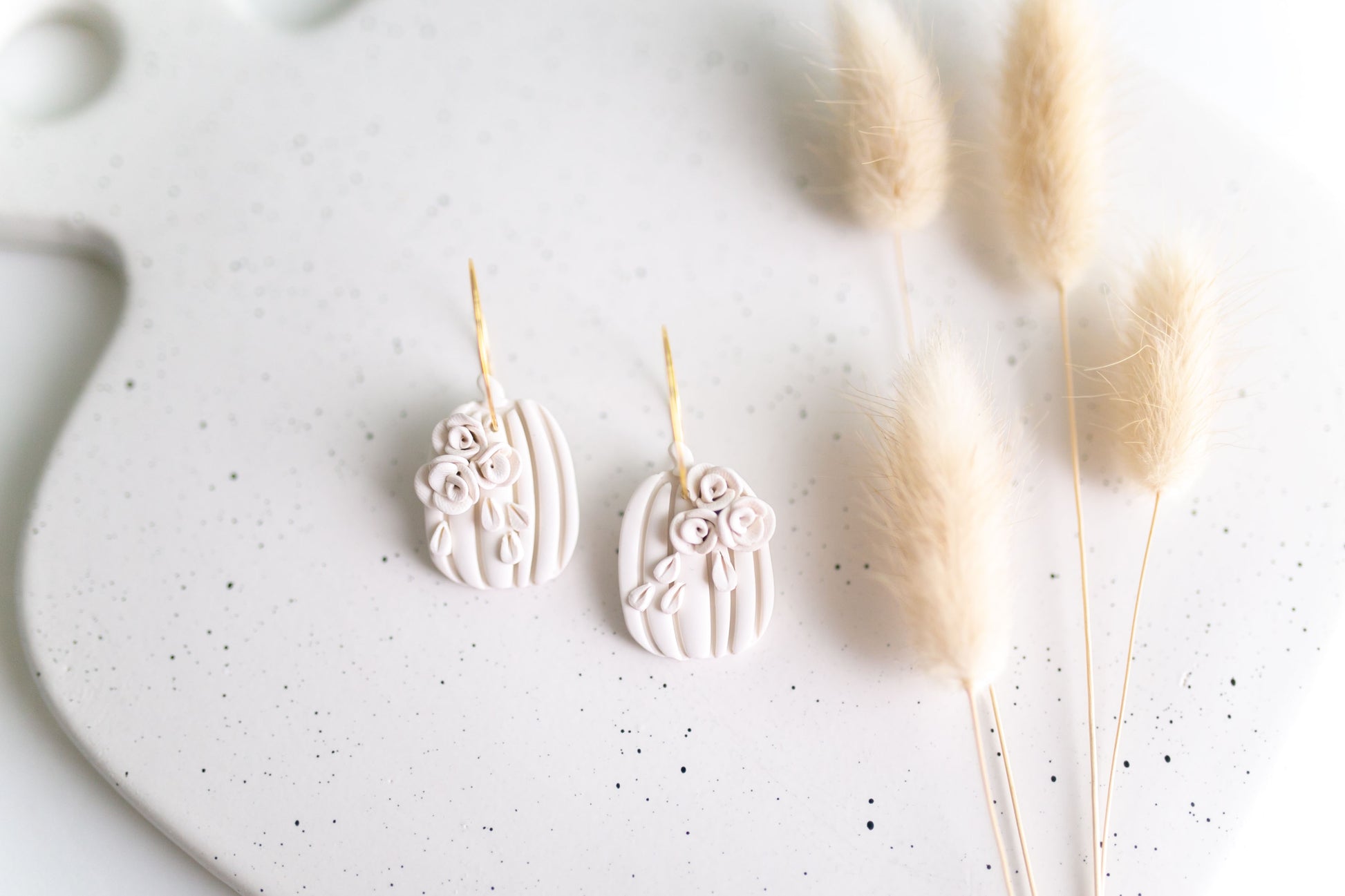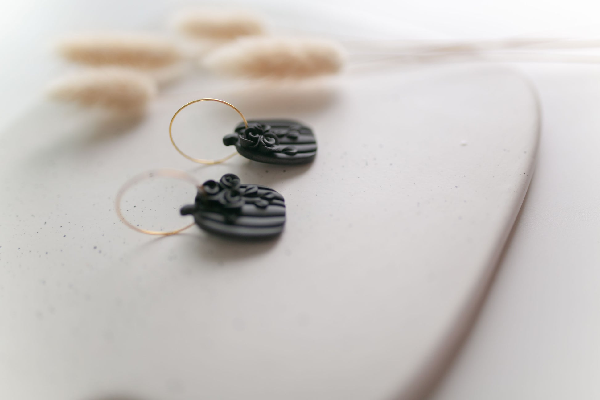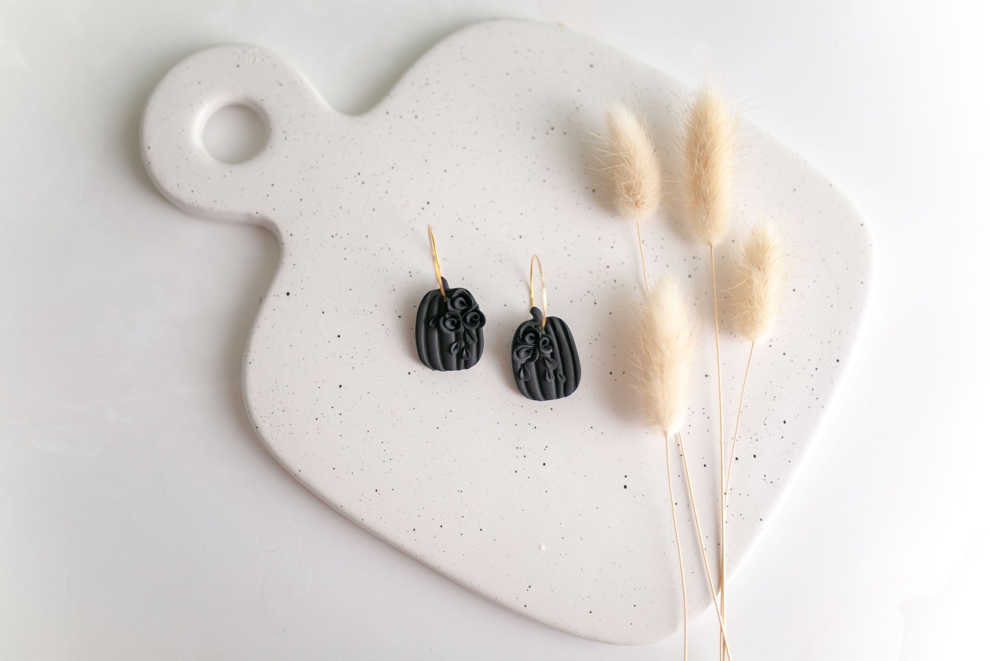 Clay earring | Monochrome Floral Pumpkin Hoops | Fall Collection