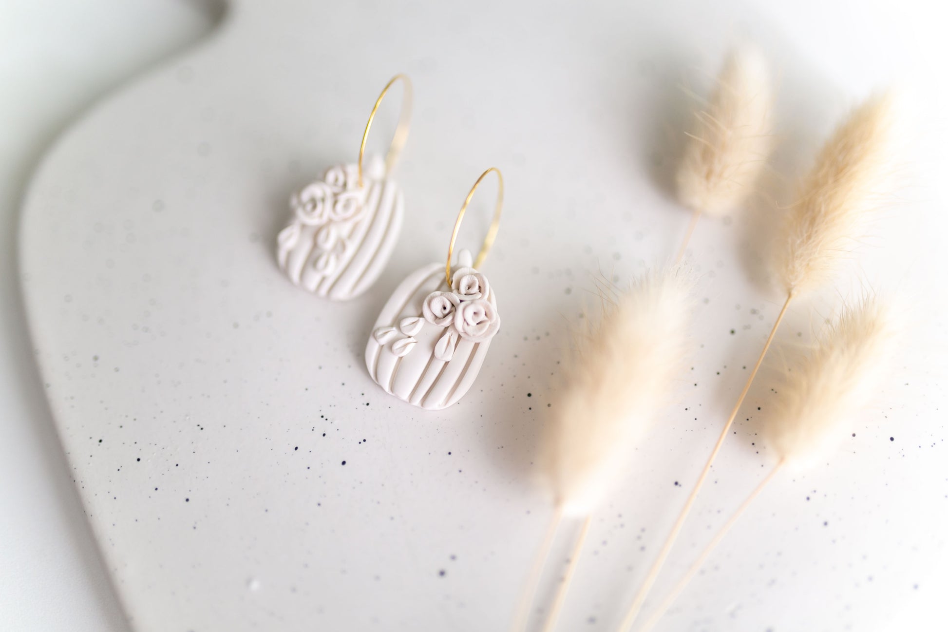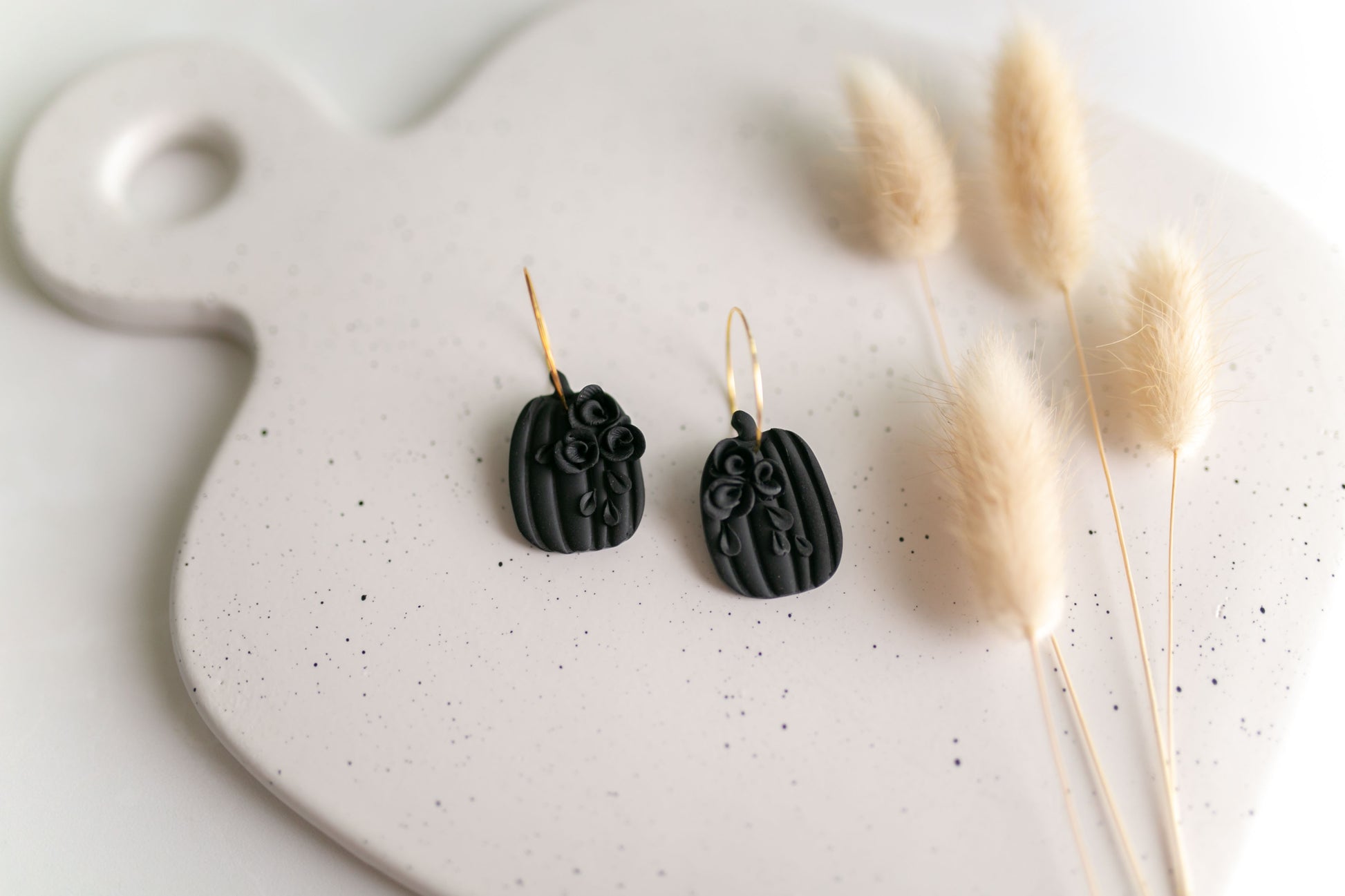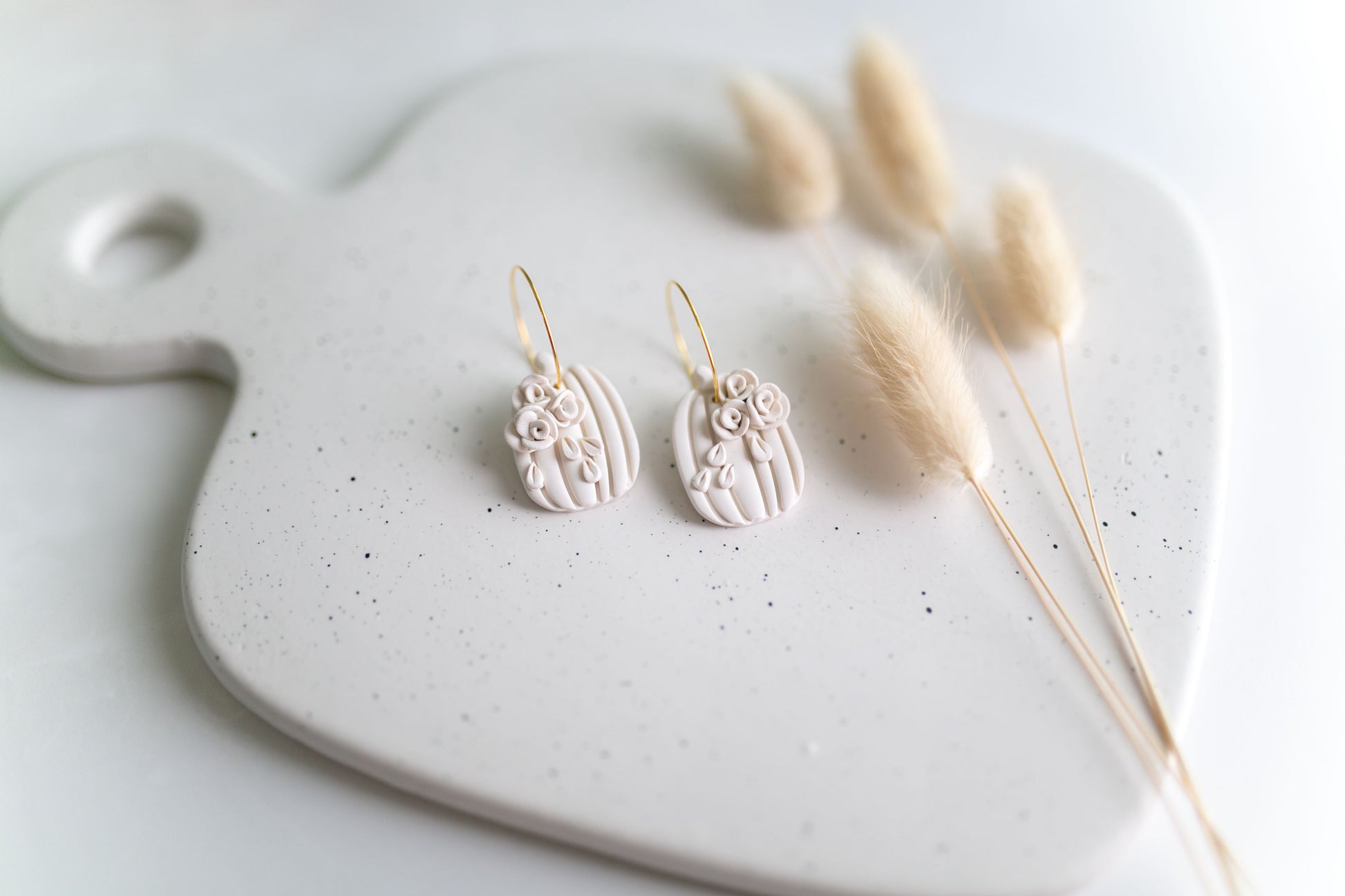 Clay earring | Monochrome Floral Pumpkin Hoops | Fall Collection