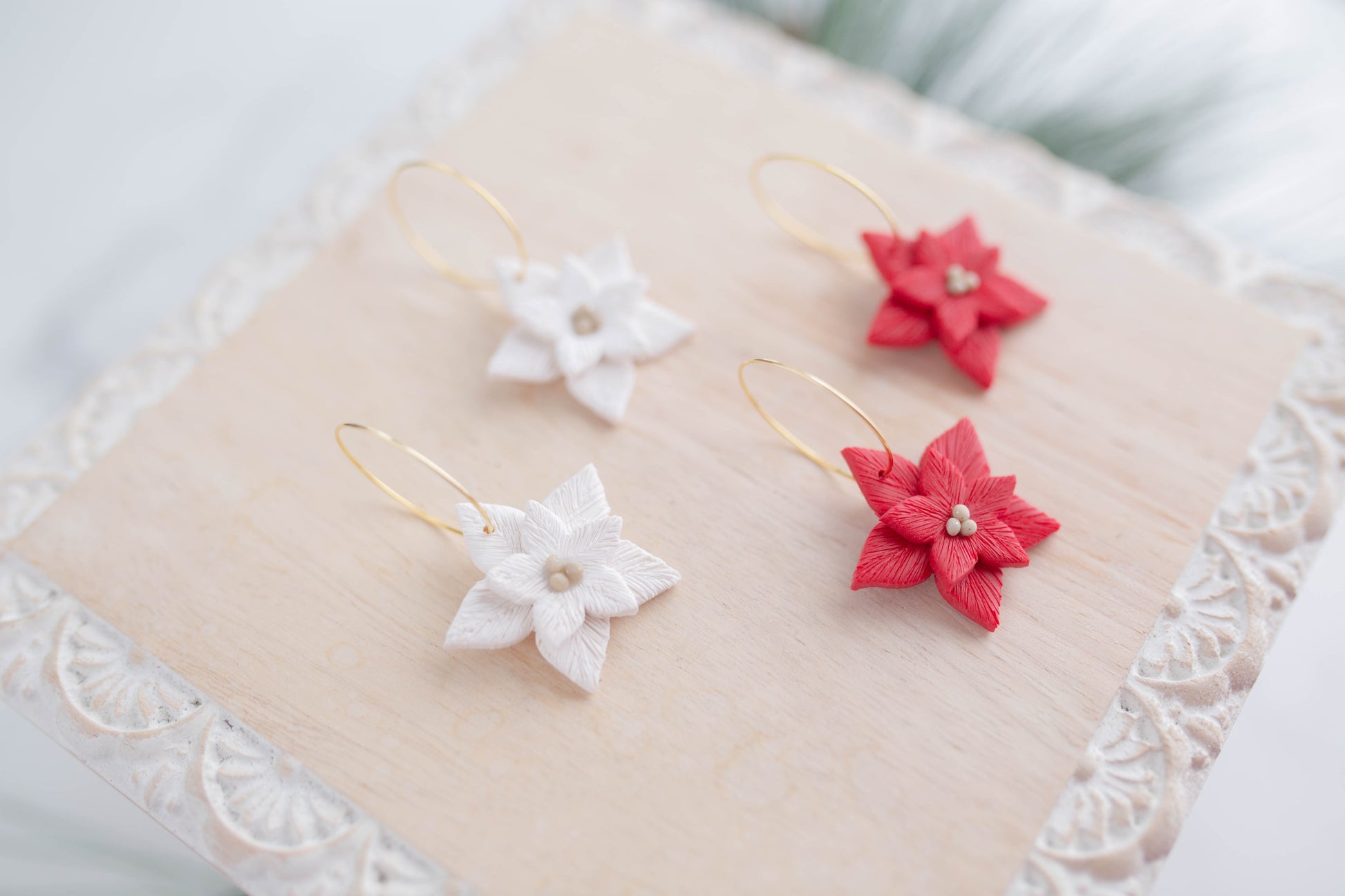 Clay Earring | Poinsettia Hoops | Christmas Collection