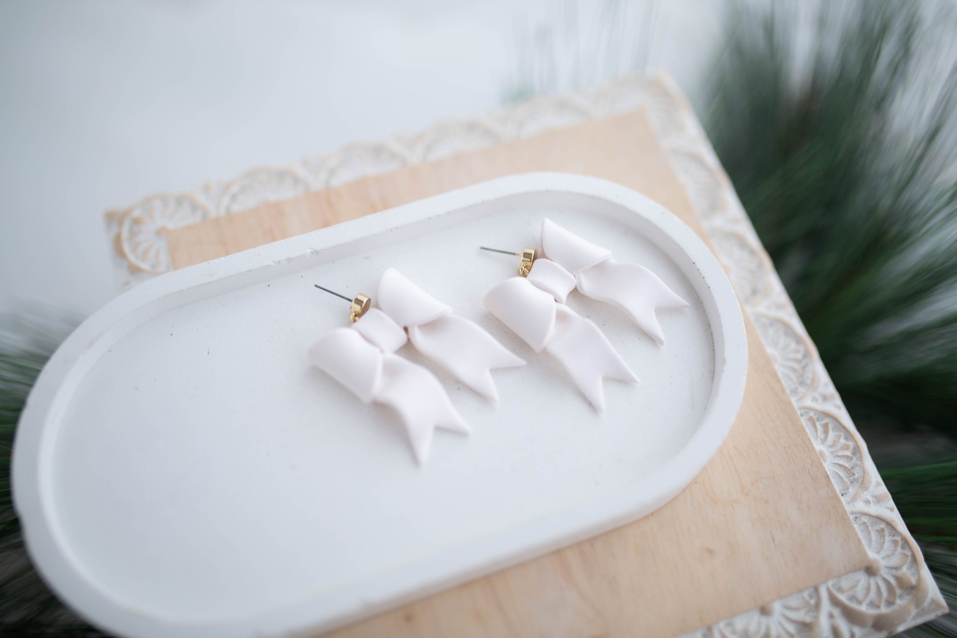 Clay Earrings | Festive Ribbon Dangles | Jingle+Joy Collection