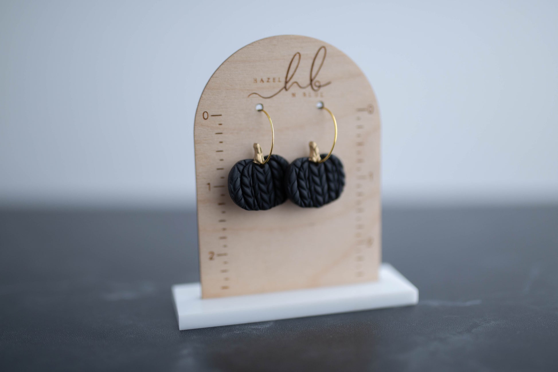 Clay Earrings | Black + Gold Pumpkin Hoops | Boo Collection