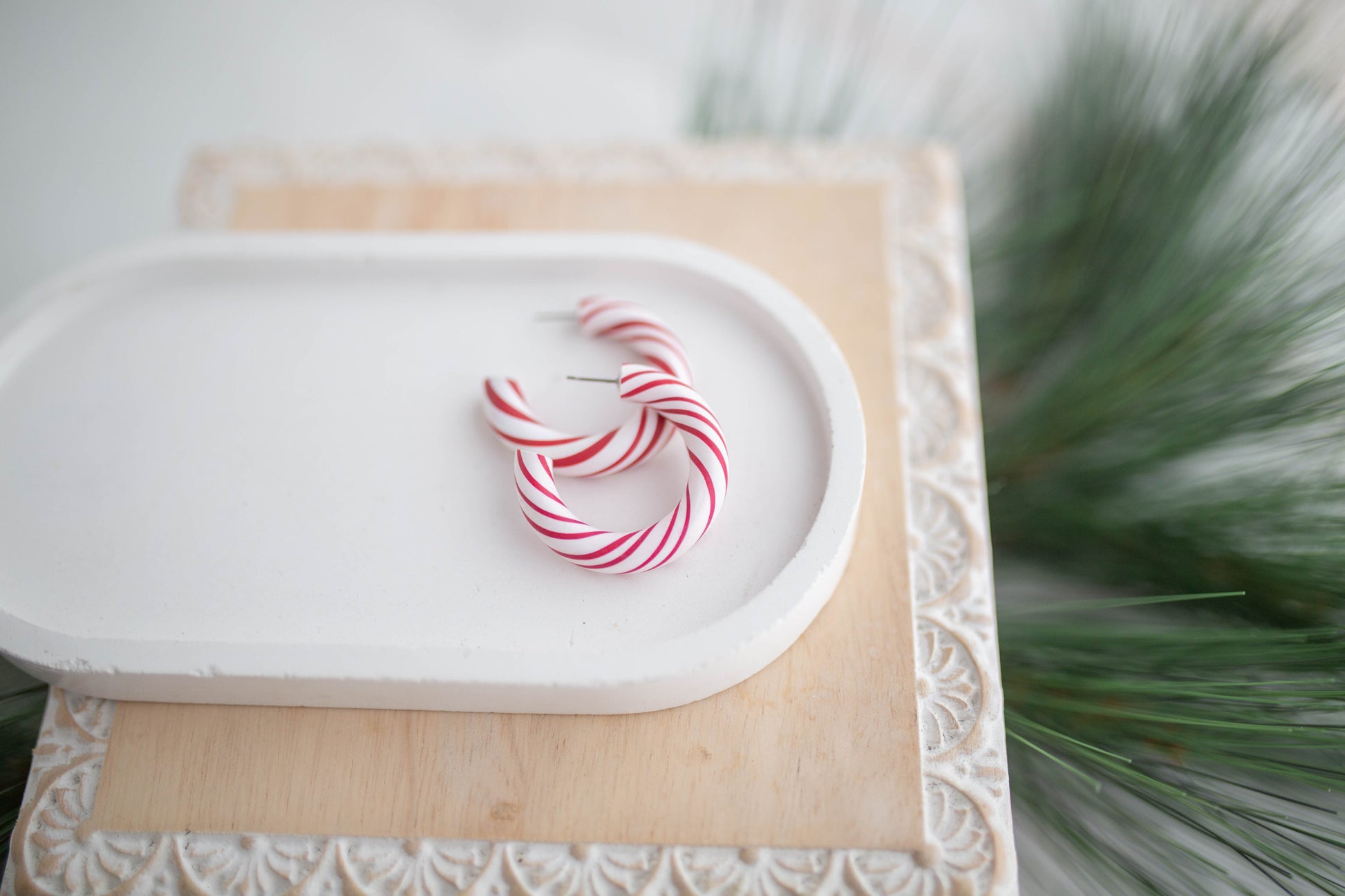 Clay Earrings | Candy Cane Hoops | Jingle+Joy Collection
