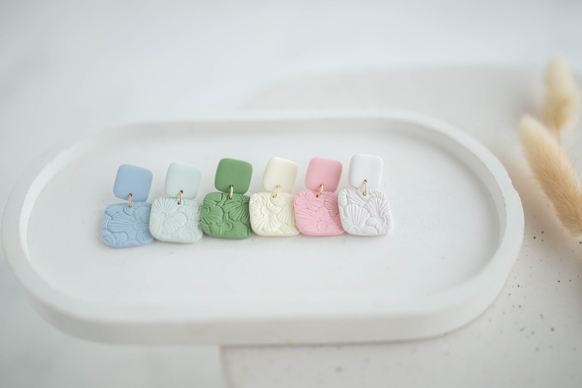 Clay Earrings | Happy Square Dangles | Happy Collection