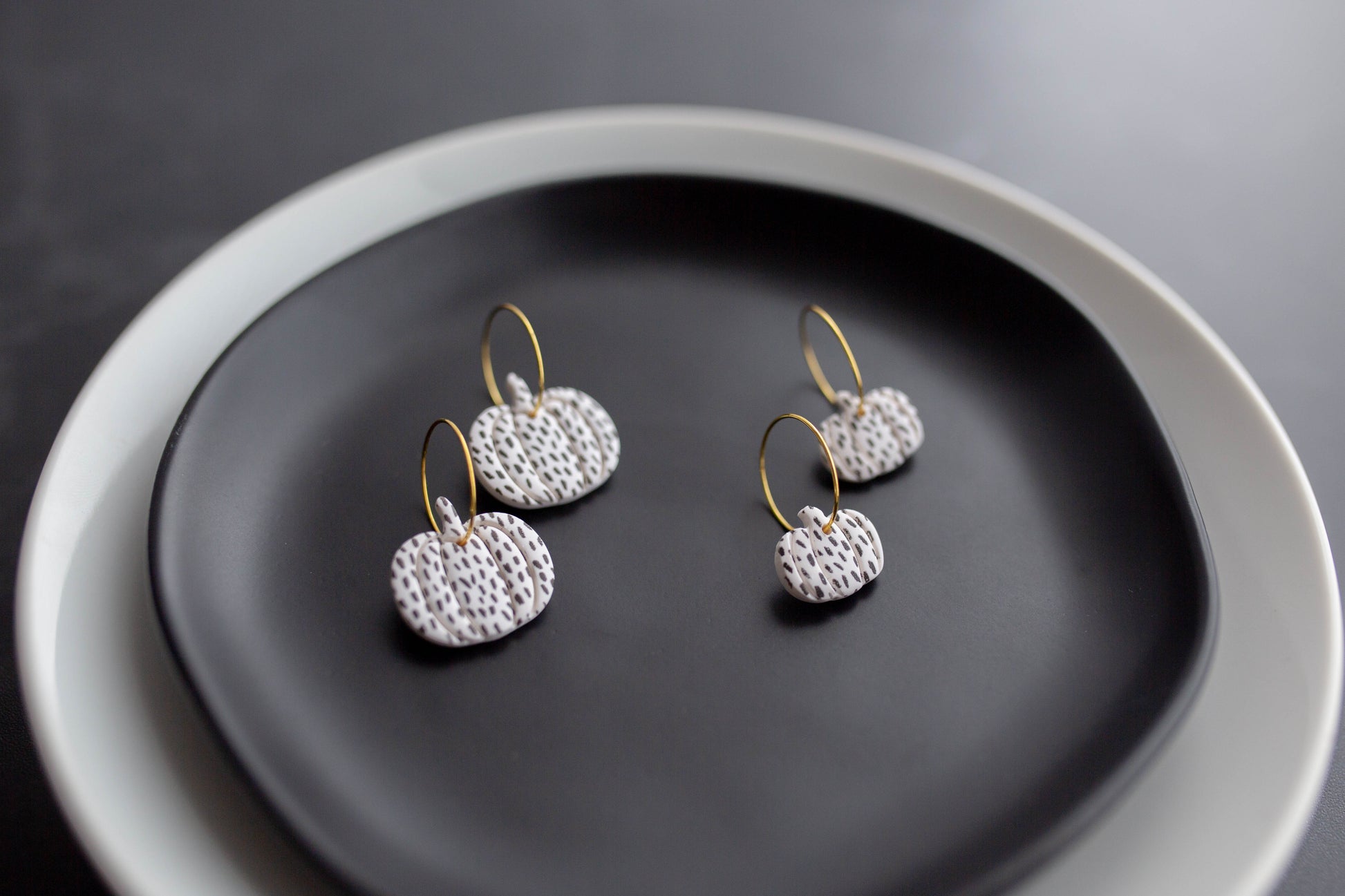 Clay Earrings |Mommy & Me Polka Dot Pumpkin Hoops | Boo Collection