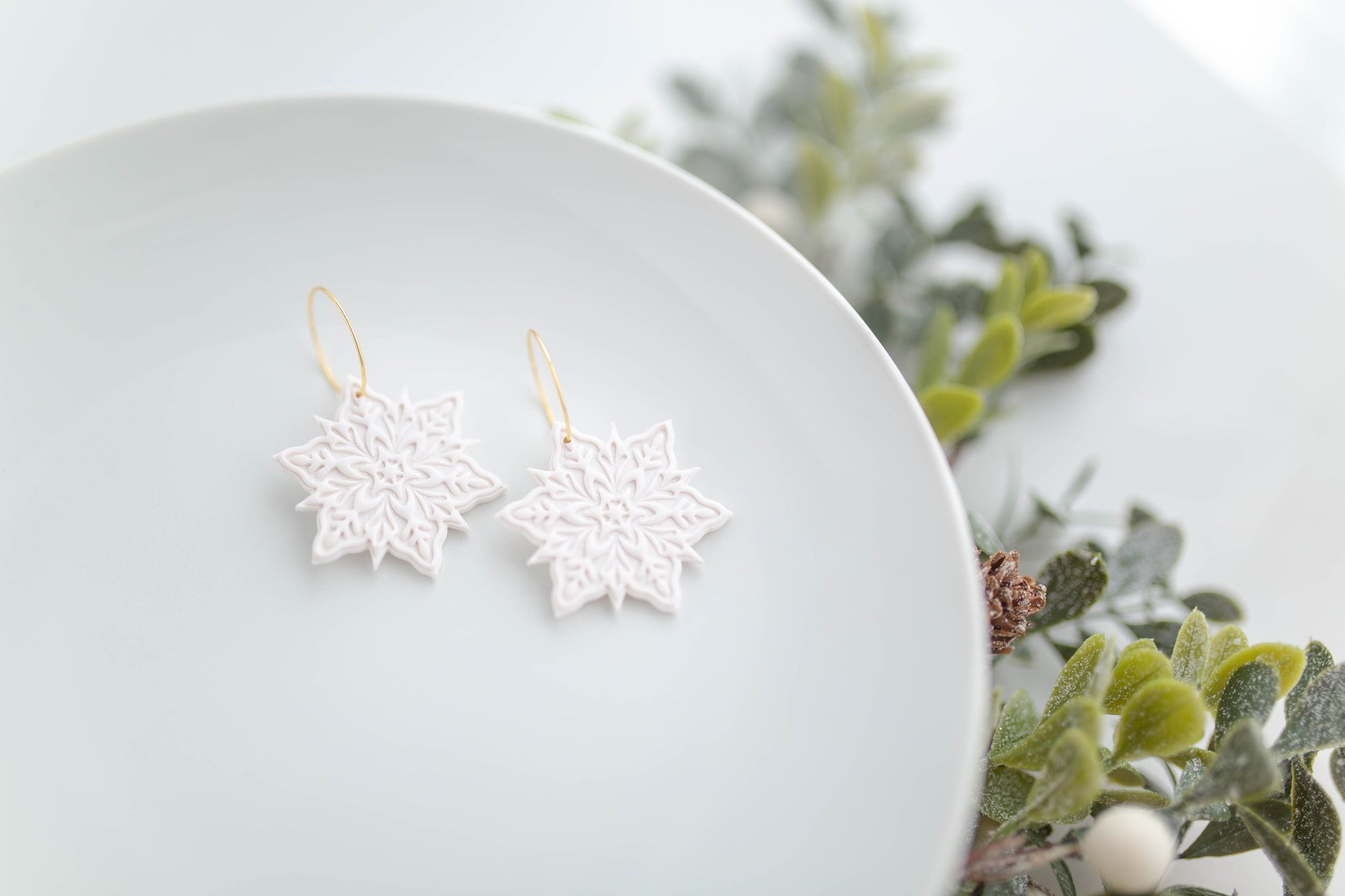 Clay Earrings | Snowflake Hoops | Merry Everything