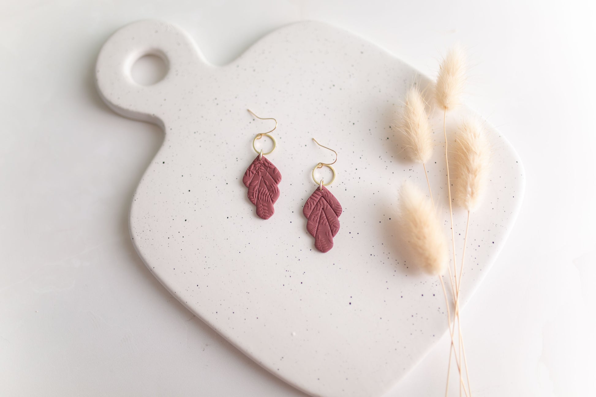 Clay earring | Floral Leaf Dangles | Fall Collection